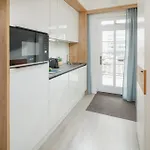 Pełnowymiarową kuchnię wyposażono w urządzenie do parzenia kawy/herbaty oraz kuchenkę mikrofalową, lodówkę i przybory kuchenne. Od tego apartamentu do przystanku autobusowego Thomas Morus w zasięgu ręki.